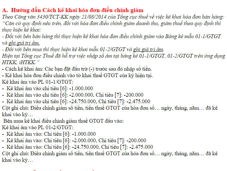 HƯỚNG DẪN CÁCH VIẾT HÓA ĐƠN ĐIỀU CHỈNH GIẢM: